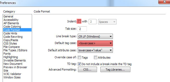 同じCode Format内にある、Advanced Formatting : CSS をクリック。