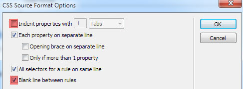 Indent property ... のチェックもはずします。